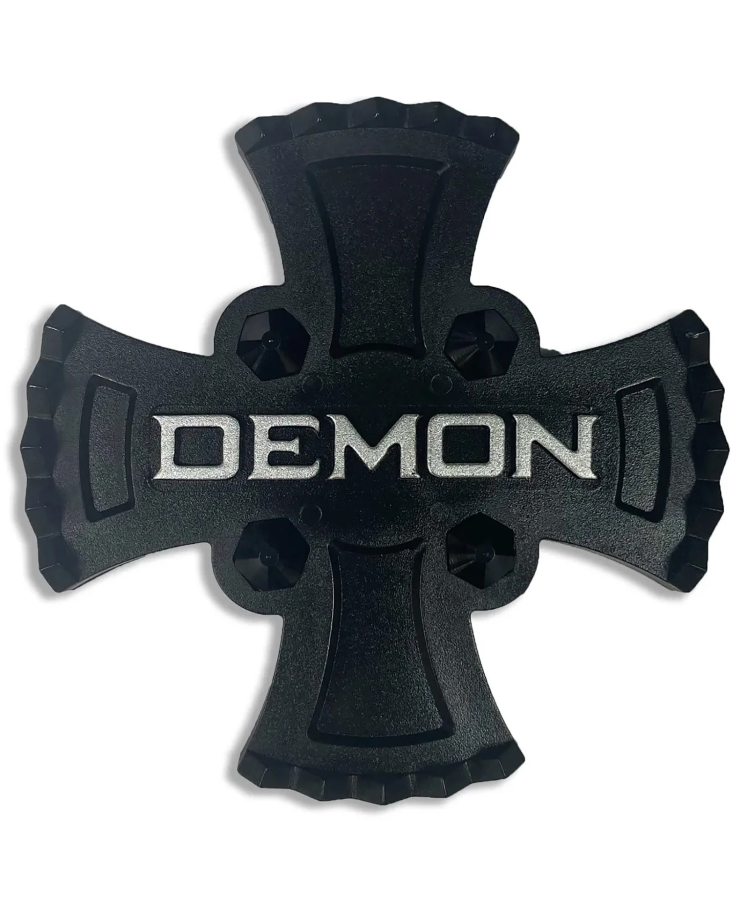 The classic demon cross stomp pad with 4 raised grip spikes.